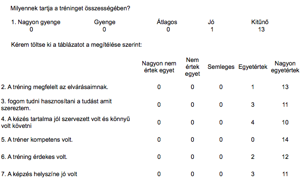 A résztvevők nagyon élvezték a tréninget és nagyon pozitív visszajelzéseket adtak. Néhány résztvevői megjegyzés: