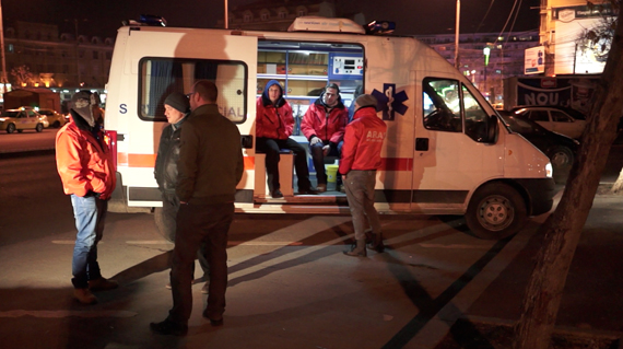 Hamarosan továbbmegyünk az éjszakai megkereső körút következő állomására. “Ez kicsit rázós környék, itt ne szálljatok ki a kocsiból, és ne is vegyétek elő a kamerát,” magyarázza Adrian, az egyik szocmunkás. “A stricik nem szeretik, ha a lányokat filmezik.” Megfogadjuk a tanácsát. Amint megáll a mentőautó, szinte azonnal körésereglenek a lányok, többségük roma, 18-25 év közötti, szellősen öltöztek fel és szemmel láthatóan be vannak állva – másként nem viselnék ilyen könnyen a hideget. Bediktálják az azonosítójukat, és megpróbálnak minél több kondomot elvinni. Alig pár perc múlva az egyik lány elkiáltja magát: “Garda, garda!” (rendőrök!) – és a lányok olyan varázslatos gyorsasággal tűnnek el a kapualjakban, mint amikor a gazellacsapat kiszagolja a közeledő oroszlánt. Csak éppen a gazellák nem tűsarkúban járnak. Mire a rendőrautó odaérkezik mellénk, már üres az egész utca.