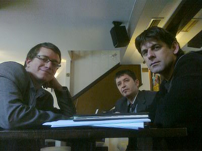 A kivonuló civil tagok: Szemelyácz János pszichiáter, a pécsi INDIT drogambulancia igazgatója (jobbra), Gondi János, a MADÁSZSZ elnöke (középen) és Sárosi Péter a TASZ drogpolitikai programvezetője (balra)