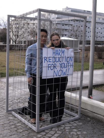 Úgy gondoljuk, hogy figyelemfelkeltő akciónknak nagy sikere volt: minden delegált és újságíró, aki eljött a találkozóra, szembesült az üzeneteinkkel: „Vessünk Véget a Globális Drogellenes Háborúnak”, „Az Ártalomcsökkentés Életeket Ment” és „A Tiltás Nem Működik”. Kiállítottuk a pályázatunkra érkezett legjobb posztereket és a rendőrség megengedte, hogy 2 napig ott maradjanak, így bárki láthatta őket, aki belépett az épületbe. Szeretnénk köszönetet mondani azoknak a lelkes aktivistáknak akik részt vettek az eseményen, elsősorban azoknak az INPUD és a Youth Rise soraiból, akik saját transzparensekkel érkeztek, és a ketreceinkbe állva szimbolizálták az illegális droghasználók kirekesztettségét és kitaszítottságát.