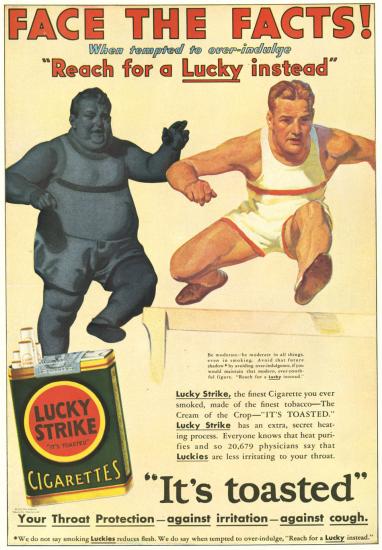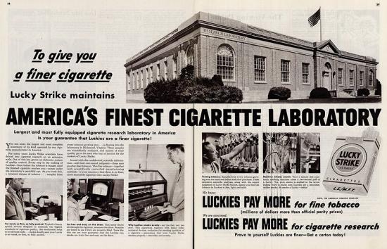 Egy közelebbről nem megnevezett „független szaktanácsadó laboratórium” „tudományos kísérletei” szerint a Lucky Strikenak lágyabb aromája van, mint a többi cigarettának. A tudományos evidenciát a népszerű énekesnő, Marlene Dietrich nyilatkozatával támasztják alá, aki szintén a dohánygyár termékét szívja.