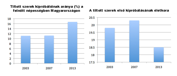 Nem tudjuk, hogy mennyire fokozza hibalehetőségeket az adatbevallási hajlandóság hiánya a jogszabályi környezet miatt. A válaszhiány értékek jóval magasabbak voltak, mint 2007-ben, miután ezeket korrigálták, azt az eredményt kapták, hogy a 2007-ben mért 11,6%-ról 2013-ra 16,7%-ra nőtt azok aránya, akik legalább egyszer kipróbáltak már tiltott szert (ún. életprevalencia). Tehát jelentősen, 50%-al nőtt a kábítószer-fogyasztás előfordulása Magyarországon. Az első droghasználat életkora jelentősen csökkent 2007 és 2013 között: 20 évről 18,5 évre. A polidrog használat elterjedésében is negatív tendencia: a tiltott szert valaha fogyasztók kétharmada egynél több szert is kipróbált, 20%-a háromnál több szert is. Az így mért növekedő trend egybe esik a középiskolások körében folytatott ESPAD kutatás eredményeivel. Azért is figyelemre méltó, mert eközben Európa nagy részén nem volt növekedés, inkább stagnálás ezekben a mutatókban.