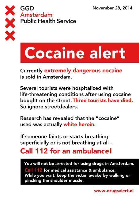 Az utóbbi hetekben három droggal kapcsolatos haláleset történt Amszterdamban, és legalább 14 komoly rosszullétet okozott az utcán vásárolt heroin, melyet tévedésből kokainnak hittek. Az ilyesfajta különösen veszélyes kemény drogok használata légzéselégtelenséget okozott az áldozatokban.