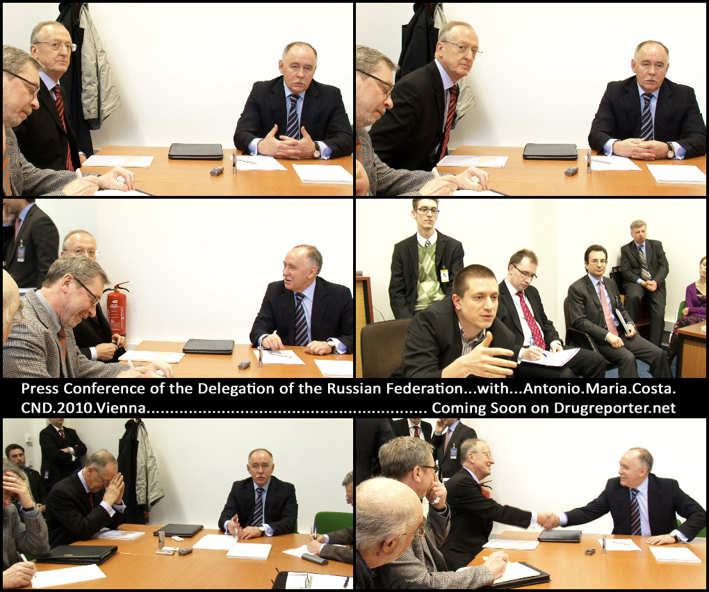 The delegation of the Russian government to the Commission on Narcotic Drugs (CND) held a press conference on March 9 in Vienna. HCLU’s video team was there to film and ask a few inconvenient questions from Mr. Viktor Ivanov, the head of the Federal Drug Control Service. We asked him what is the Russian position on opiate substitution treatment (OST) that proved to be effective to reduce the demand for illegal heroin and the risks of infections. Mr. Ivanov answered that according to narcotic experts in Russia there is no evidence that OST works, in addition, in those former Soviet countries that introduced methadone treatment the experiment have shown to be a failure. The detoxification in narcotic clinics is more effective than methadone treatment, he stated (read the report on drug treatment in Russia published by the Human Rights Watch). He also mentioned that they have the same position as the US government to oppose OST (that’s not correct of course). Mr. Antonio Maria Costa, the out going executive director of the UNODC also showed up at the press event and he was shaking his head when Mr. Ivanov said OST is not effective and soon he left the room.