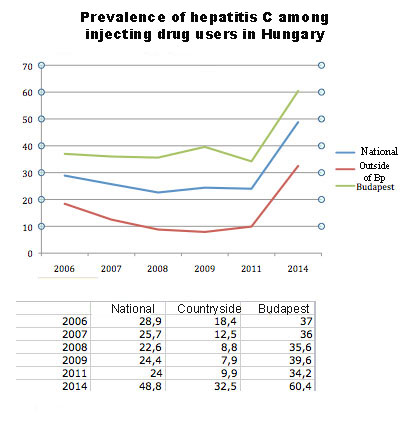 The Hungarian Civil Liberties Union (HCLU) obtained public data from the National Centre for Epidemiology (OEK) about the results of the annual national testing campaign they conducted in 2014. We submitted a freedom of information request, because the data had not been published for a year, even though the government received the information in September. We suspect the data were kept back for political reasons. From the answer, we learned that between March and May 2014, over 600 injecting drug users were tested for hepatitis-C and HIV, at 19 harm reduction service locations. Two people tested positive for HIV, and 279 tested positive for hepatitis-C. While rates of hepatitis-C infection had remained stable between 2006 and 2011, they increased sharply between 2011 and 2014. This means that the prevalence of HCV among injecting drug users rose from 34 percent to 60 percent.