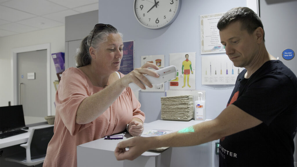 After injecting — or even without using the consumption space — people can access wound care, sexual and reproductive health services, HIV and hepatitis C testing, and referrals to treatment. Vaccinations for hepatitis A and B, flu, and COVID are also available. In the recovery area, people can rest under nursing supervision while staff monitor oxygen levels, pulse, and temperature.