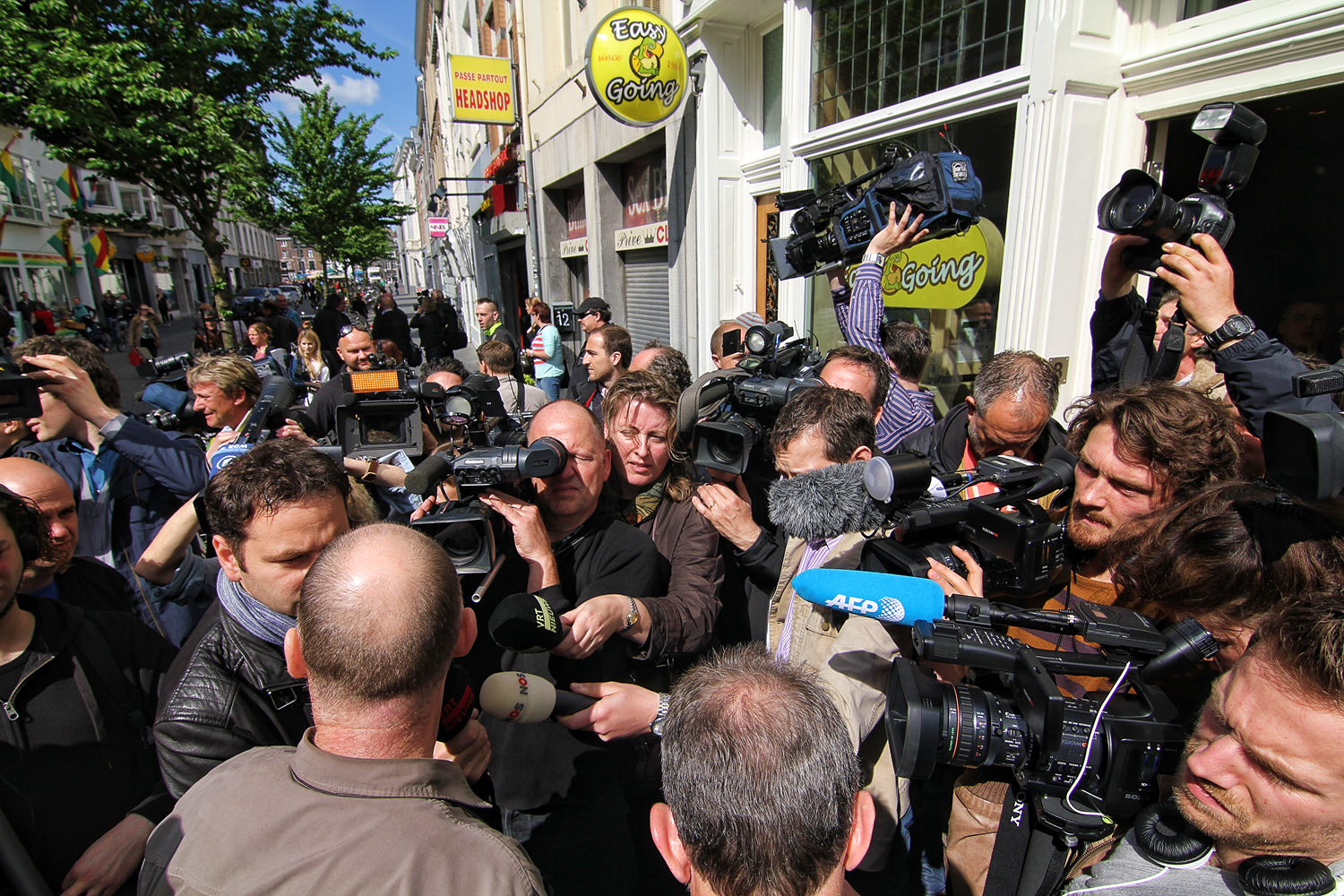 Tüntetés a Wietpas tervezet ellen egy maastrichti coffee shop előtt 2012-ben