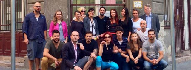 A Kék Pont csapata a bezárt tűcsereprogram épülete előtt