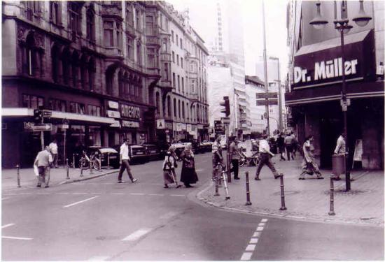 Josch Steinmetz: Igen. Egy jelentős drogszcéna alakult ki a bankok előtt a „Taunusanlage”-n, a “tűparkban”. Egy nagyon különleges helyzet volt ez, a vöröslámpás negyeddel, a nyílt drogszcénával és a bankokkal egymáshoz nagyon közel. 1992-ben eldöntötték, hogy bezárják a parkot. Ezzel egy időben a bankok és a város anyagi támogatást nyújtottak a drogsegítő rendszer fejlesztéséhez, szállások és egyéb alacsonyküszöbű szolgáltatások nyíltak meg, a metadon kezelés pedig szélesebb körben elérhetővé vált. 1992 novemberében végül bezárták a parkot és az új intézményekbe irányították az embereket. Az emberek felénél működött a terv, a többiek viszont erre a területre jöttek át, a pályaudvar környékére, és ugyanazt tették amit korábban: nyíltan injektáltak és az utcán éltek. Ekkor merült fel újra a használó-szobák gondolata. Mi 1991-92 körül egy busszal voltunk jelen a parkban, a bezárása után pedig, egy kis mobil tűcserével dolgoztunk tovább. Frankfurtban a használó-szobák megnyitását két év felkészülés előzte meg. Mind a helyiek, mind a politikusok egyértelműen támogatták. A rendőrség, az ügyészség, a drogsegítő rendszer, a politikusok valamint az egészségügyi, kábítószerügyi és szociális minisztériumok képviselői egy kerekasztal keretében együtt dolgoztak a legális megoldáson. Végül Dr. Körner, a főügyész egy speciális frankfurti megoldással állt elő, a bűnügyről az egészségügyre helyezve a hangsúlyt. Vékony jég volt ez, de miután mindenki részt vett benne, működött. Viszont nem alkalmazhattunk abban az időben senkit például Bajorországból, mert jogi problémájuk lehetett volna belőle otthon.