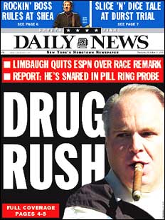 Rush Limbaugh, Amerika első számú drogellenes showmanje ezúttal a vádlottak padjáról ismerkedhetett meg a „drogellenes háborúval”. Sajnos nem tanult belőle.