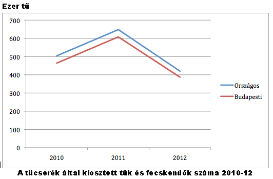 A Nemzeti Drog Fókuszpont által szervezett hétfői konferencián az adatgyűjtő központ munkatársa, Tarján Anna bemutatta az elmúlt év tűcsere programokkal kapcsolatos előzetes, még nem hivatalos adatait. Az adatok, bár sok meglepetést nem tartalmaztak, mégis letaglózóan hatottak. Ha a tűcsere programok puszta számát nézzük, akár még kedvező tendenciákat is láthatunk: 24-ről 29-re nőtt a programok száma, 16 helyett már 20 városban is elérhető tűcsere. Ez az eredmény azonban csalóka, hiszen ami igazán számít, az a programok lefedettsége, ezt pedig a kiosztott tűk számával, illetve az egy főre jutó tűk éves számával lehet legjobban mérni. Márpedig a 2011-es 648 ezerről a kiosztott tűk száma 420 ezerre, azaz 35%-al csökkent. Az elért kliensek száma pedig 3373-ról 3357-re.