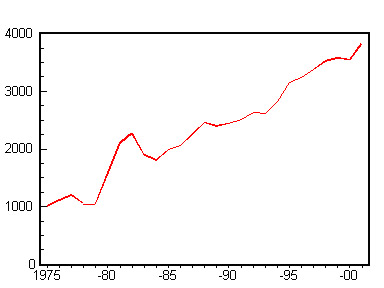 Kábítószerrel kapcsolatos bűncselekmény miatt börtönre ítéltek számának alakulása 1975-2001 között
