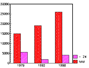 A problémás droghasználók száma 1979-, 1992- és 1998-ban, minden életkor, illetve 24 éves és alatti