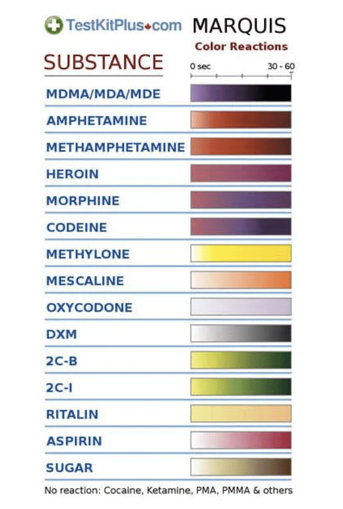 11. Érdemes beszerezni az Interneten is megrendelhető ún. Marquis reagens tesztet, amivel bevizsgálhatod az általad vásárolt anyagot. Ez a teszt az amfetamin jelenlétét narancssárga/barna elszíneződéssel jelzi. De fontos tudni, hogy ezek a tesztek pontatlanok lehetnek és csak azt jelzik, hogy mi a fő hatóanyag – ettől még lehetnek benne szennyező/mérgezőanyagok.