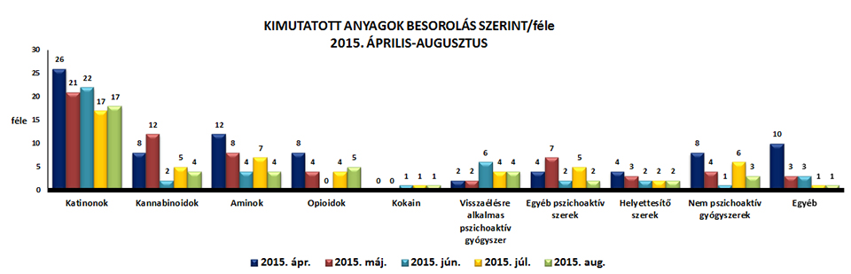 CSJ: Jóval minimálisabb arányban. Amfetaminok még előfordulnak, de a kokain csak elenyésző mértékben és a heroin is ritka. Gyakrabban találtunk ópiát szubsztitúciós kezelésben alkalmazott szereket – például metadont